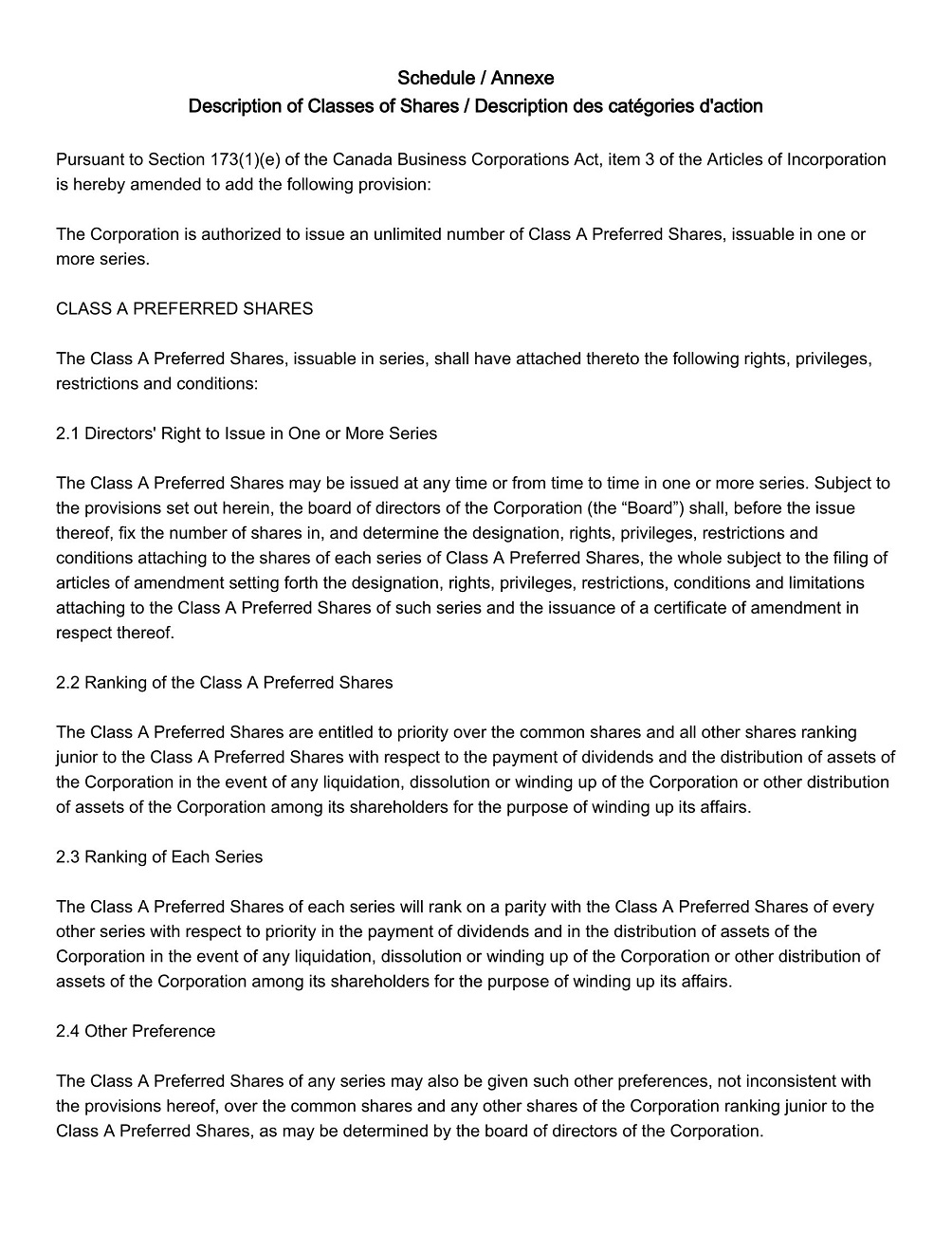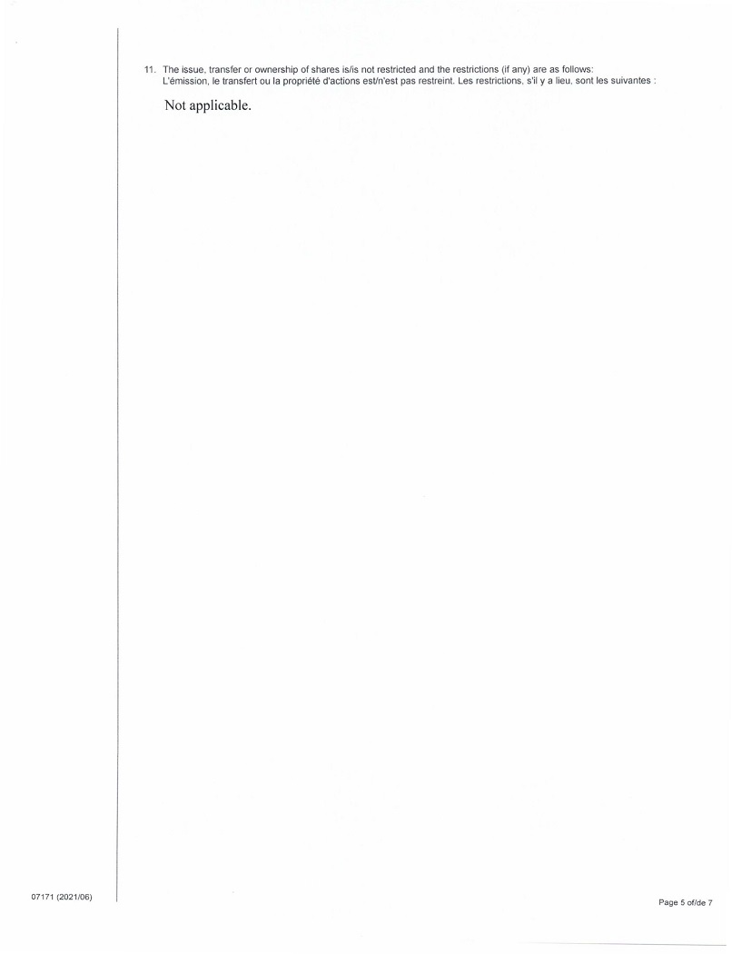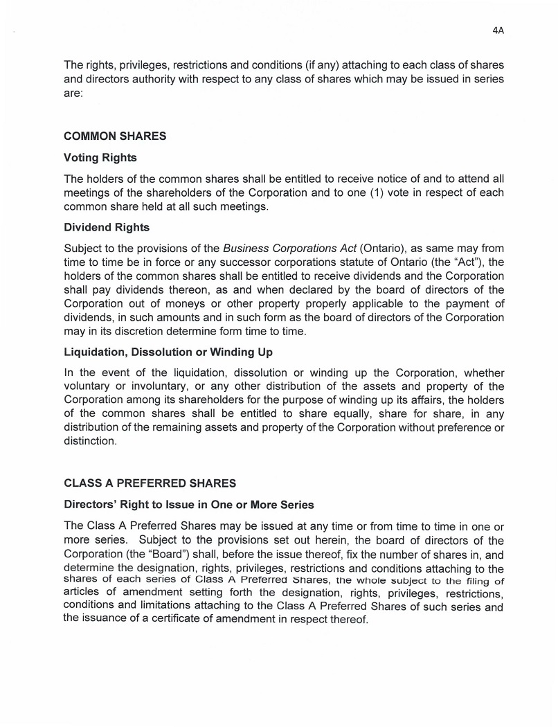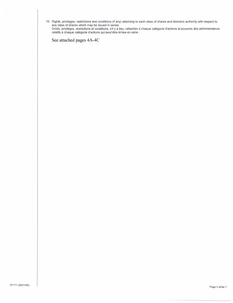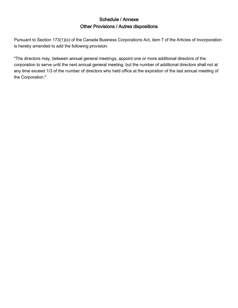 | (c) | a certificate of status dated March 18, 2025 issued by the Director under the OBCA with respect to the Corporation; |