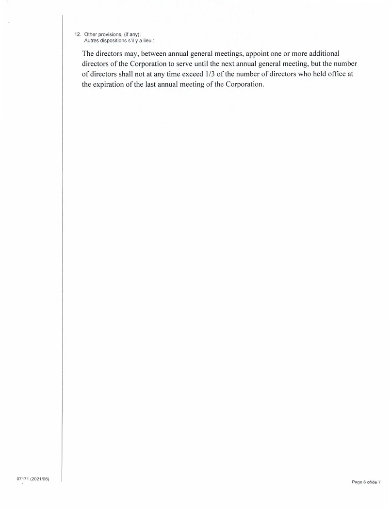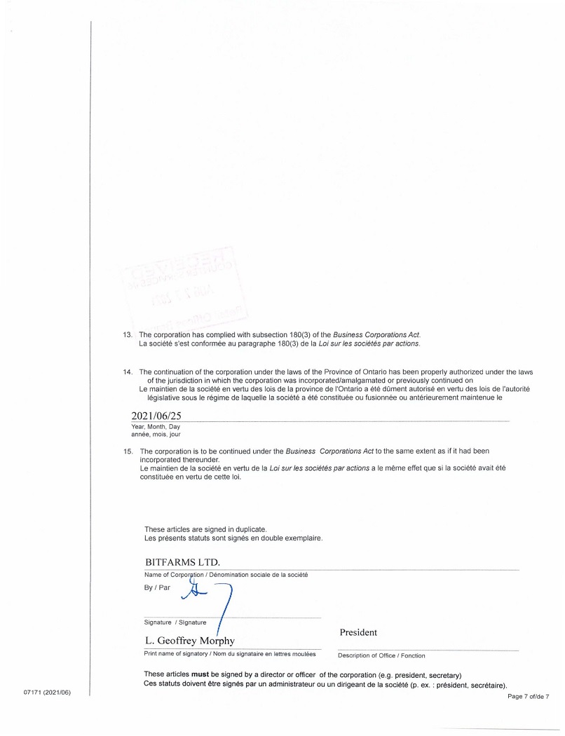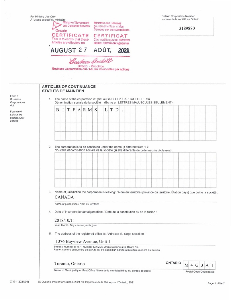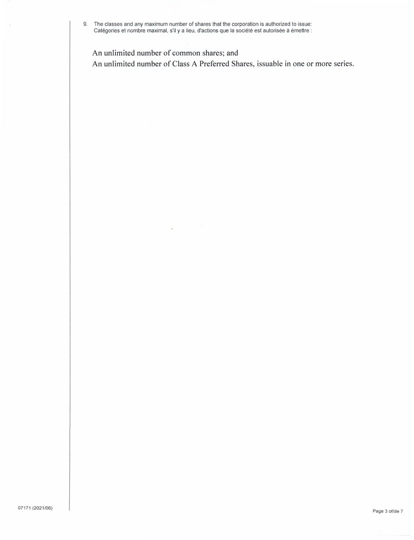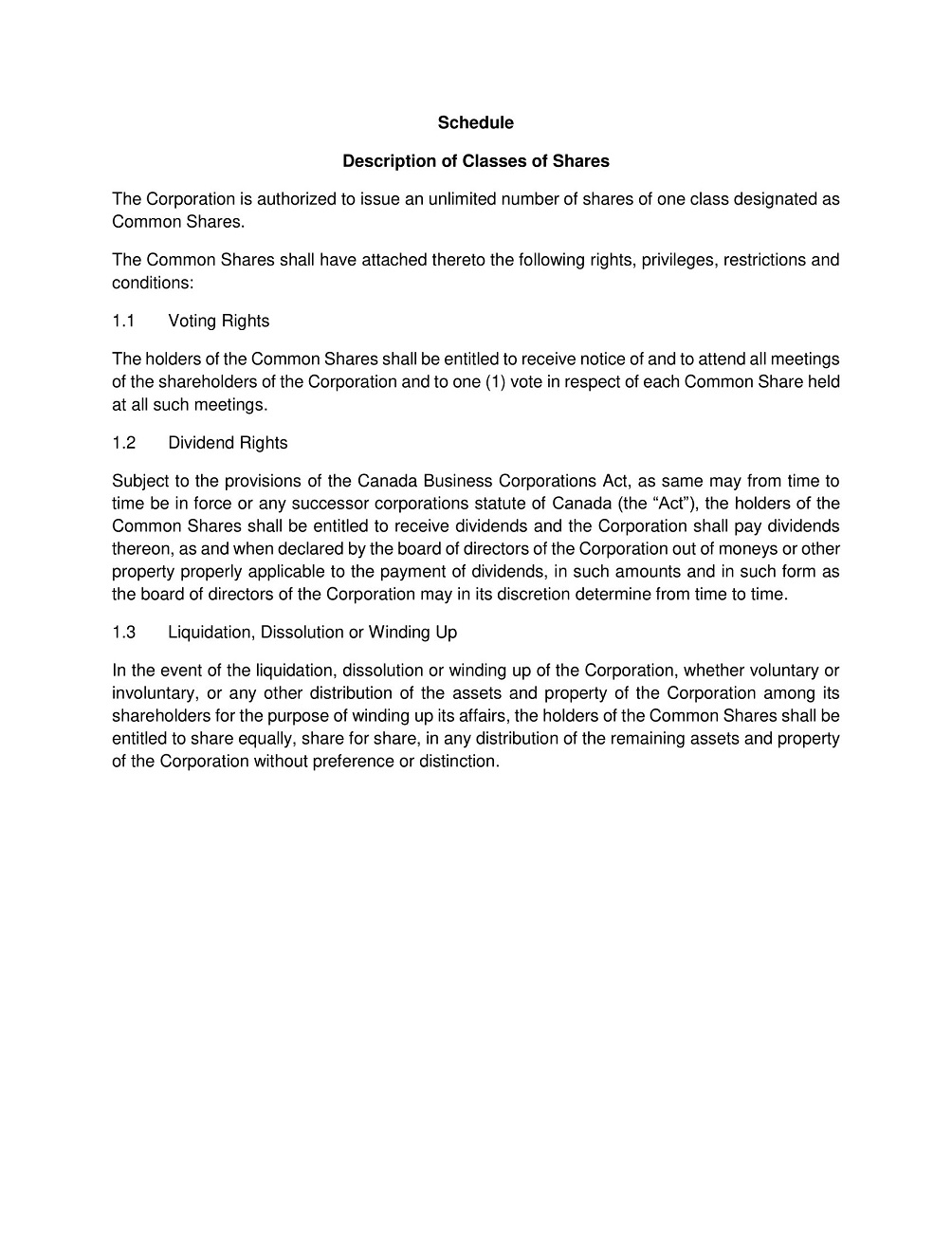 | (c) | a certificate of status dated March 18, 2025 issued by the Director under the OBCA with respect to the Corporation; |