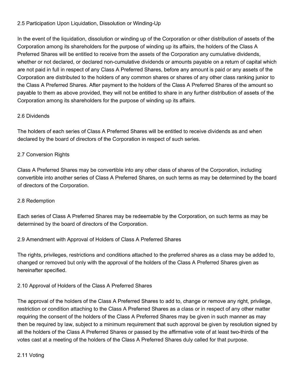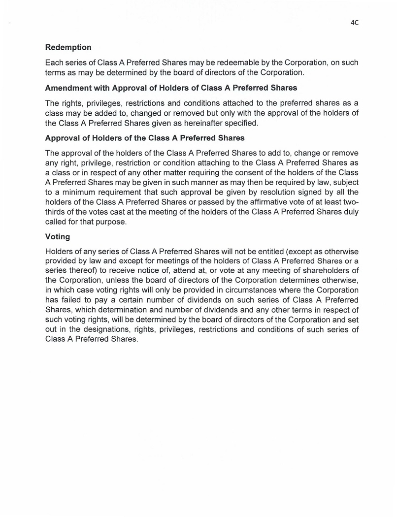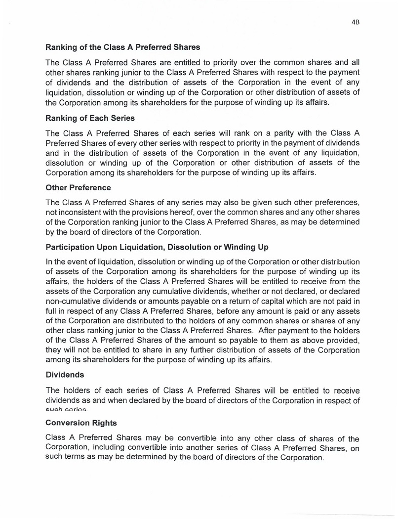 In certain circumstances described in the Shareholder Rights Agreement, each Right evidenced hereby may entitle the registered holder thereof to purchase or receive assets, debt securities or shares in the capital of the Corporation other than Common Shares, or more or less than one Common Share, all as provided in the Shareholder Rights Agreement.
